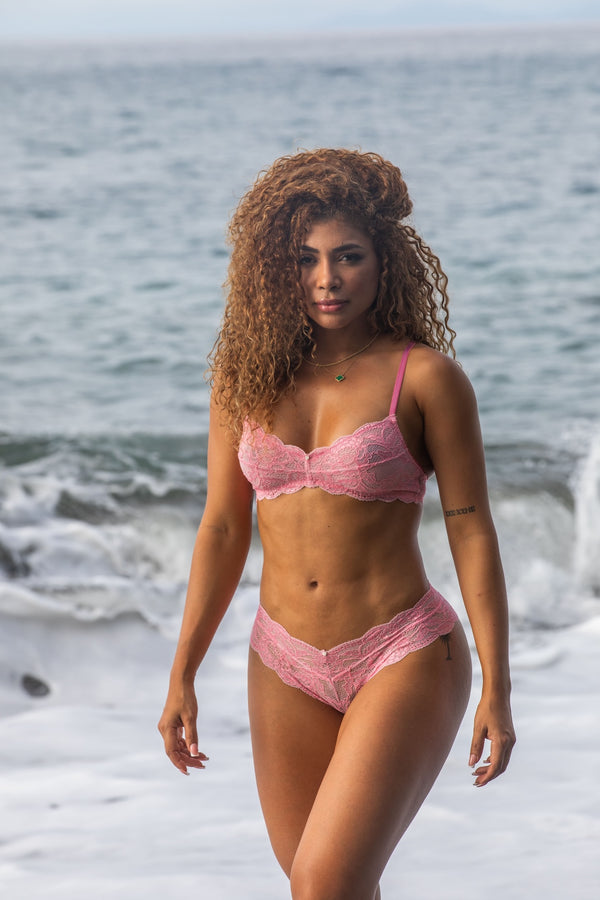 Influenced by the Colombian girls that wear their lingerie to be seen. Where every moment is fashion show full of bright colors in lace and tulle, camera ready skin tight microfiber and red carpet quality lounge wear.